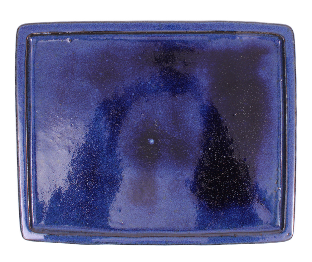 Eckiger Bonsai-Untersetzer, blau glasiert