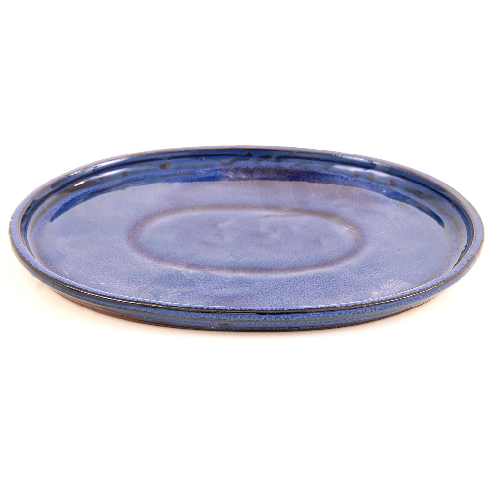 Ovaler Bonsai-Untersetzer, blau glasiert