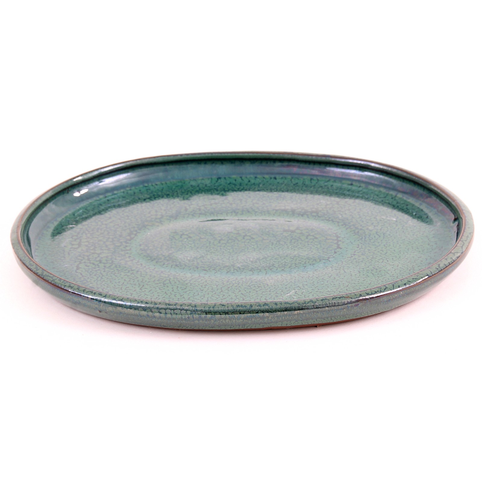 Ovaler Bonsai-Untersetzer, grün glasiert