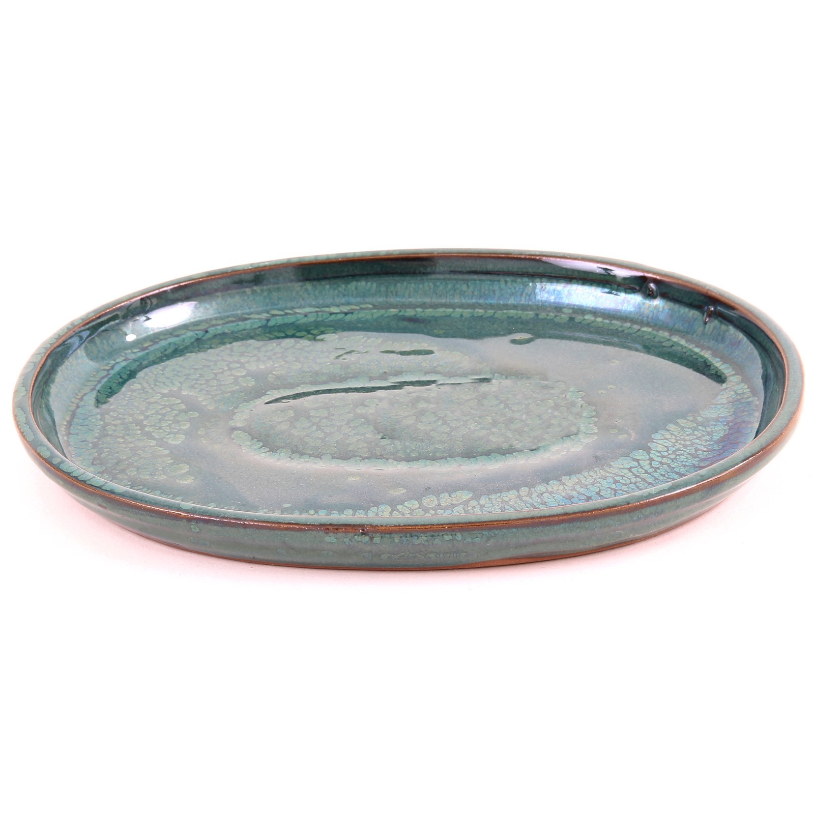 Ovaler Bonsai-Untersetzer,grün glasiert