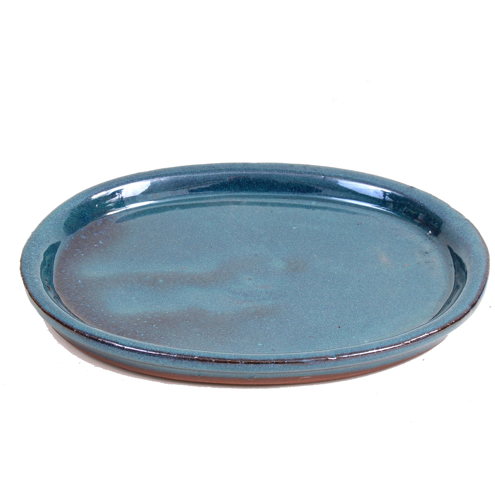 Ovaler Bonsai-Untersetzer, grünblau glasiert