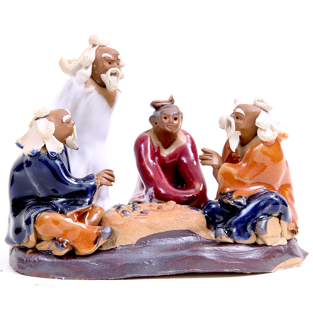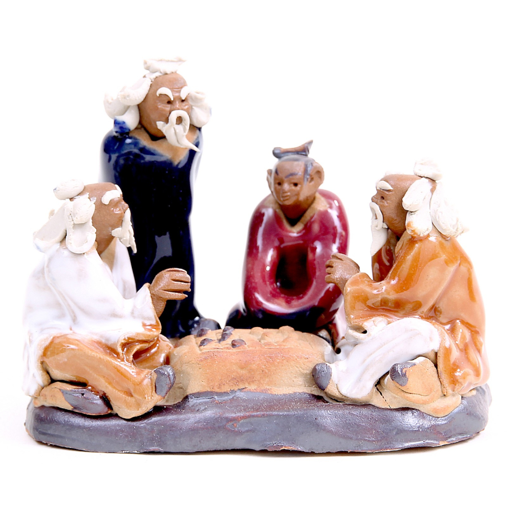 Figur "Vier Meister beim Spiel", aus Keramik, ca. 9,5 x 7 x 7 cm (Breite x Tiefe x Höhe)
