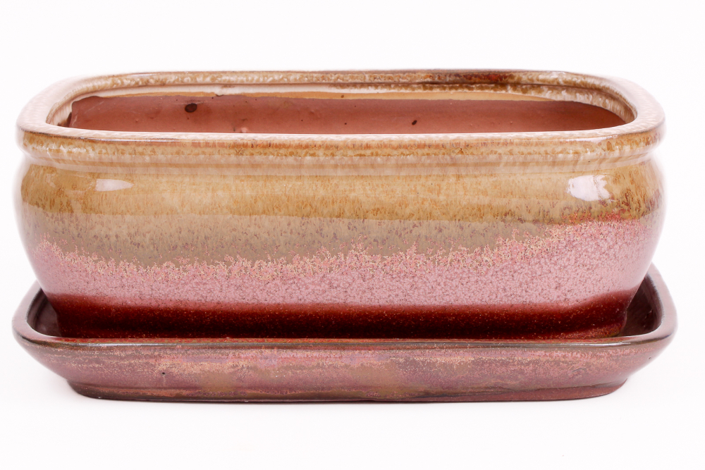 Bonsai - Suiban / Untersetzer eckig 29.5 x 17 (innen 27 x 14.5) cm rotbraun Keramik 53950