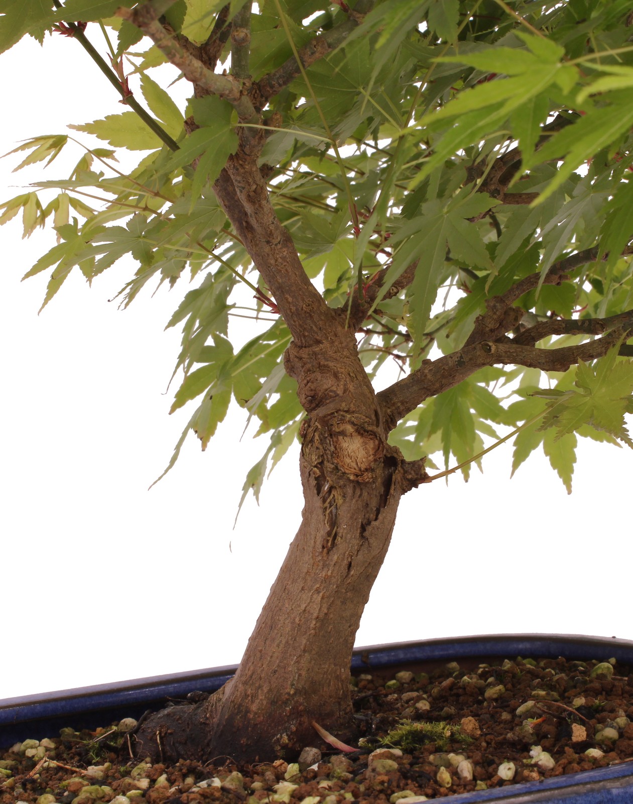 Der japanische Fächerahorn mit seiner meist filigranen Struktur ist eine der Hauptarten in der japanischen Bonsaiwelt. Der grün-rötliche Austrieb wird zum Sommer grün und leuchtet im Herbst in rötlichen Tönen.