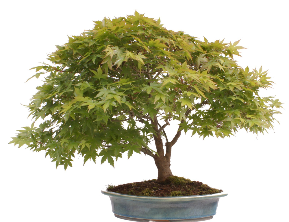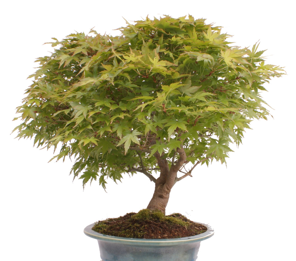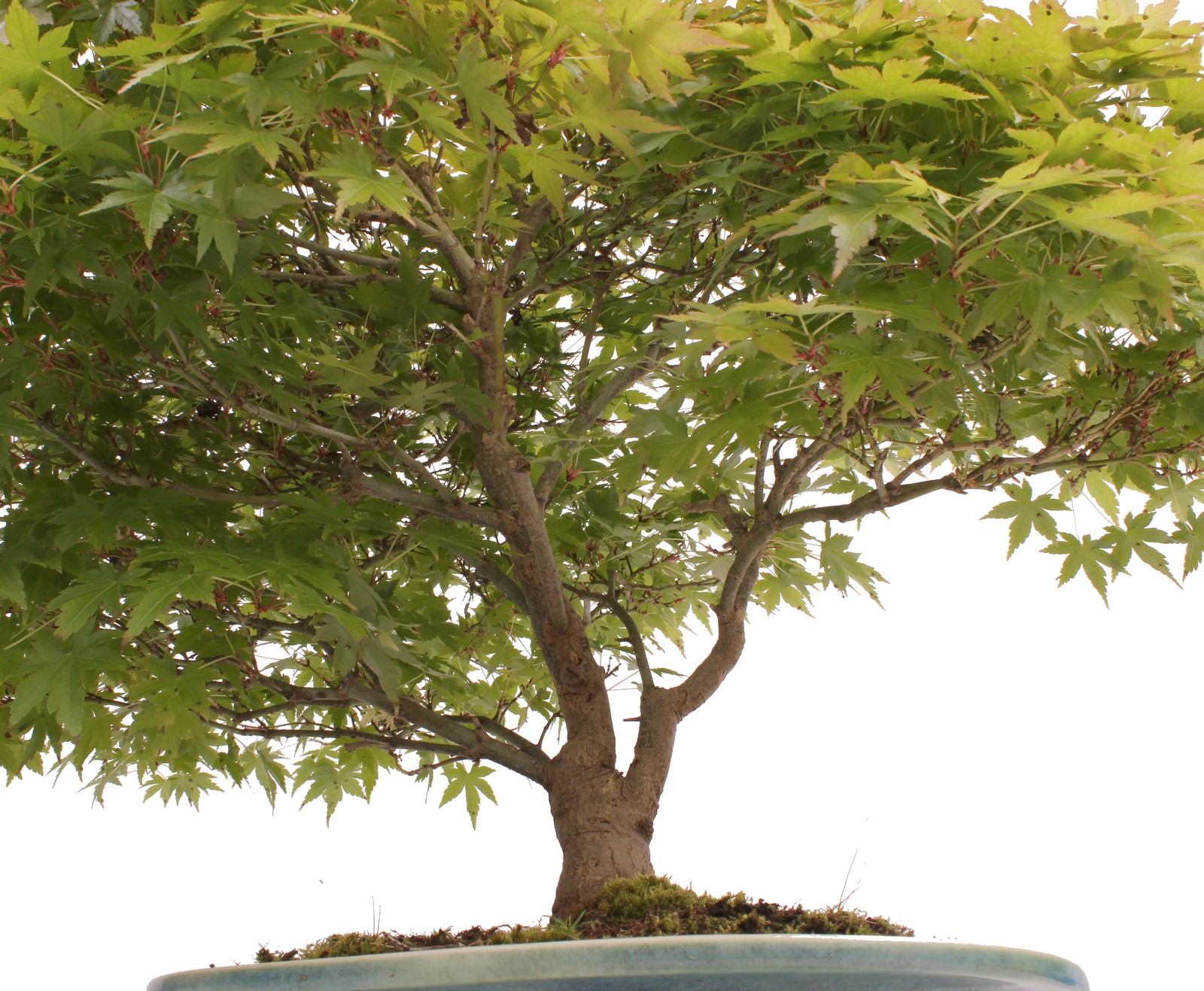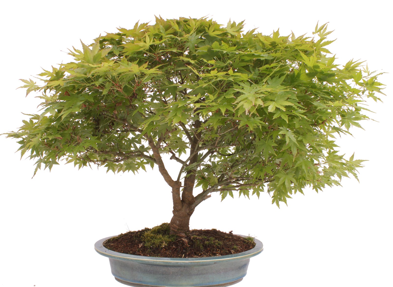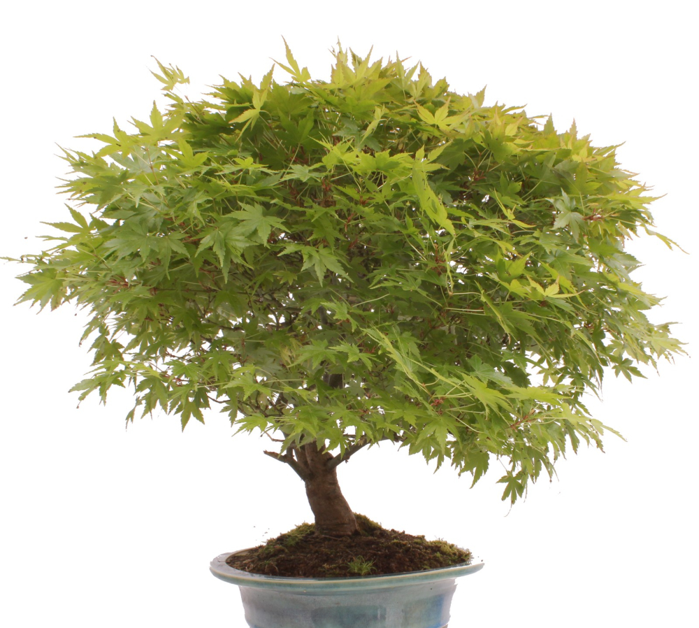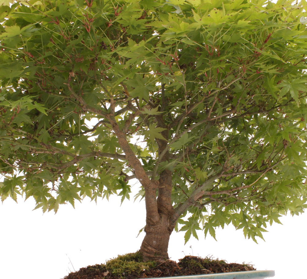 Der japanische Fächerahorn mit seiner meist filigranen Struktur ist eine der Hauptarten in der japanischen Bonsaiwelt. Der grün-rötliche Austrieb wird zum Sommer grün und leuchtet im Herbst in rötlichen Tönen.