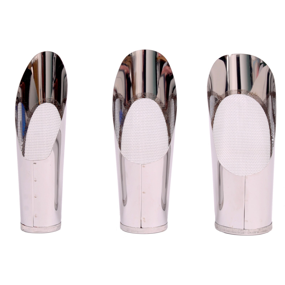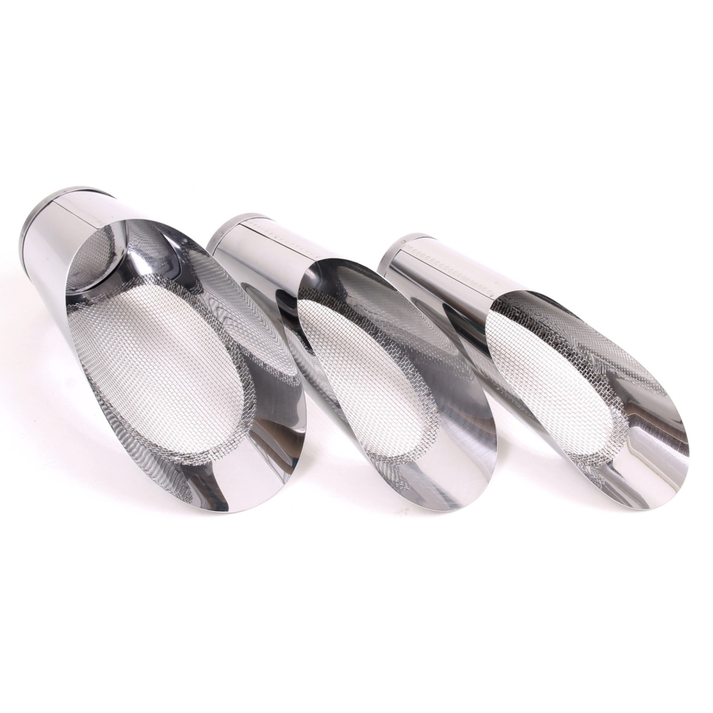 Das Erdschaufel-Set aus Edelstahl besteht aus drei unterschiedlich großen Schaufeln, die jeweils mit einem integrierten Sieb ausgestattet sind.