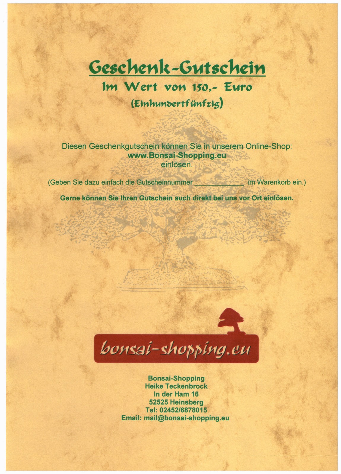 Der Gutschein kann in unserem Online-Shop oder direkt bei uns Vorort eingelöst werden.