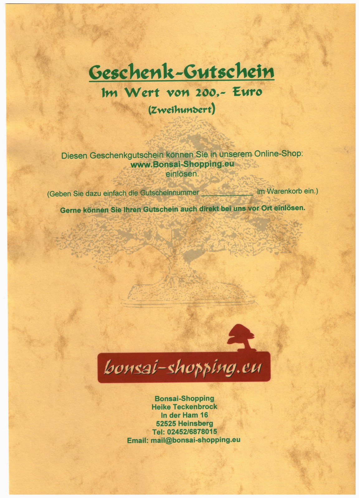 Geschenk-Gutschein über 200,- Euro