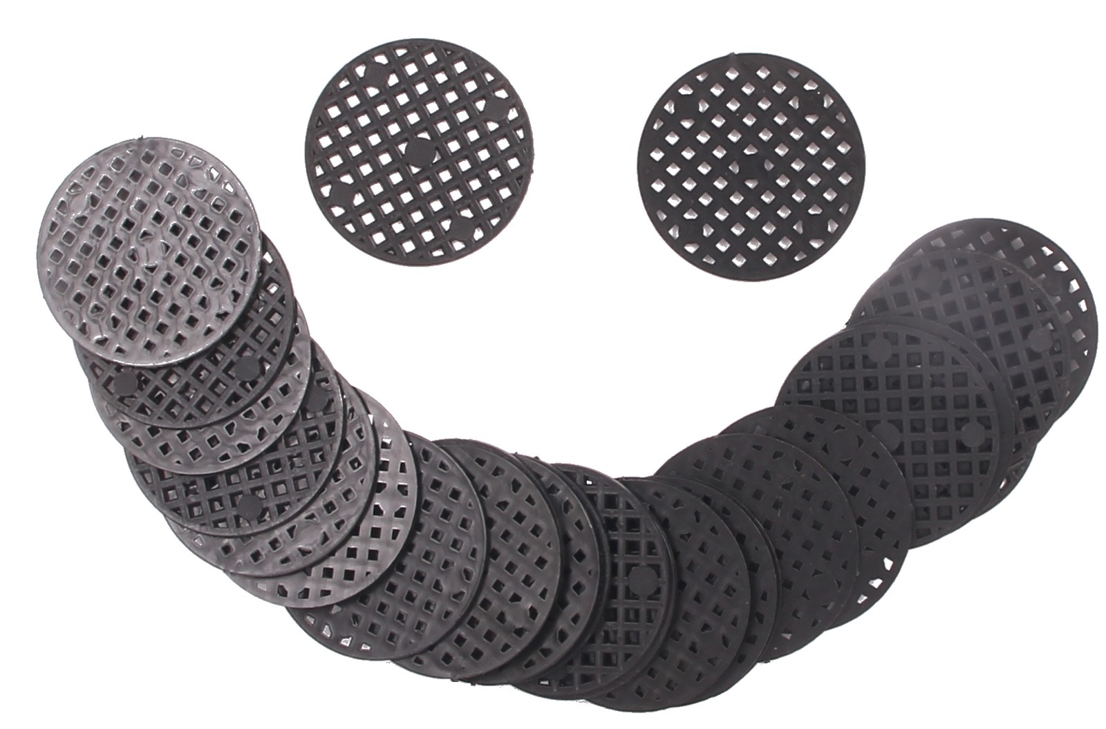 Gitter für Drainage, Abdecknetz, rund 4,5 cm Ø , Schwarz, Pack. mit 25 Stück 61279