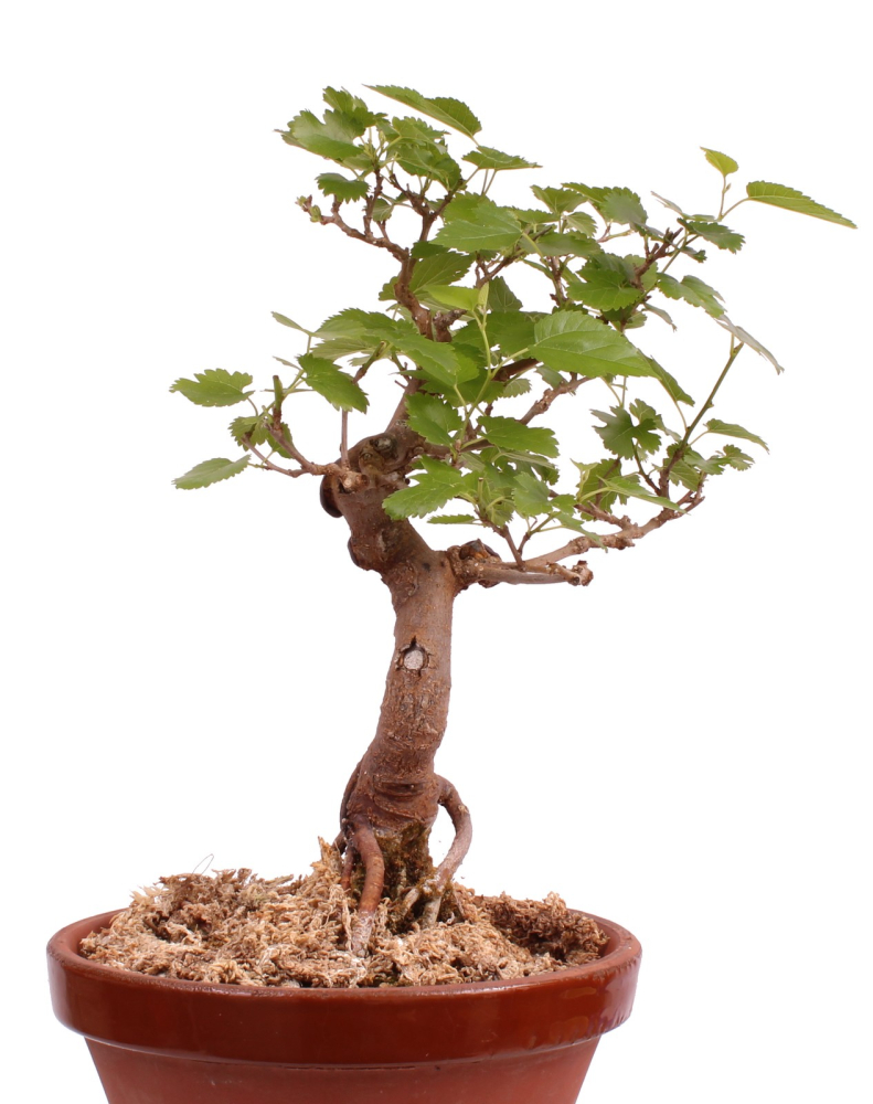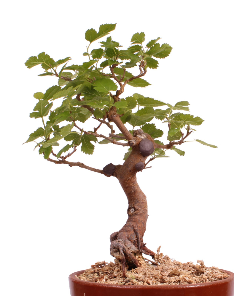 Die Maulbeere ist vorgestaltet und steht noch in einer japanischen Anzuchtschale aus Ton.