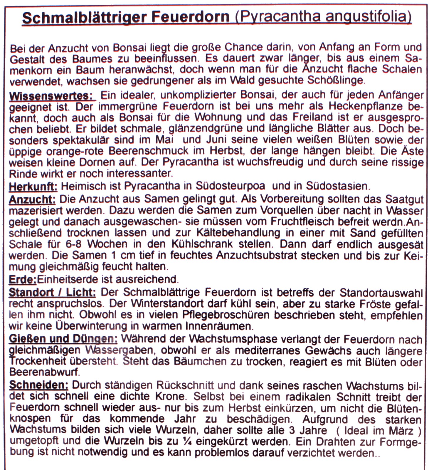 Der immergrüne Feuerdorn ist bei uns eher als Heckenpflanze bekannt, doch auch als Bonsai für Wohnung und Freiland ausgesprochen beliebt.