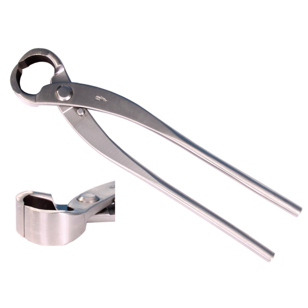 Die Wurzelzange 270 mm aus Edelstahl ist ein präzises Werkzeug zur Bearbeitung von Bonsaiwurzeln.